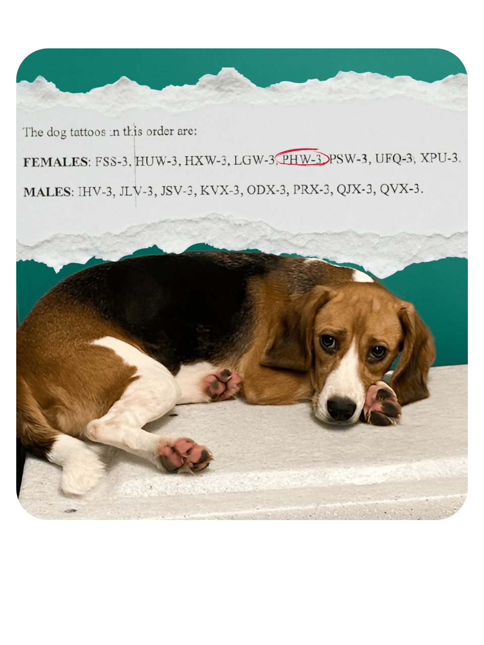 When Beagle Freedom Project learned of Chami and Felicity’s suffering, we launched a relentless campaign to save their lives. Thanks to a Temporary Restraining Order (TRO) granted to BFP, Chami and Felicity are momentarily safe from further experimentation… but their fate still hangs in the balance.